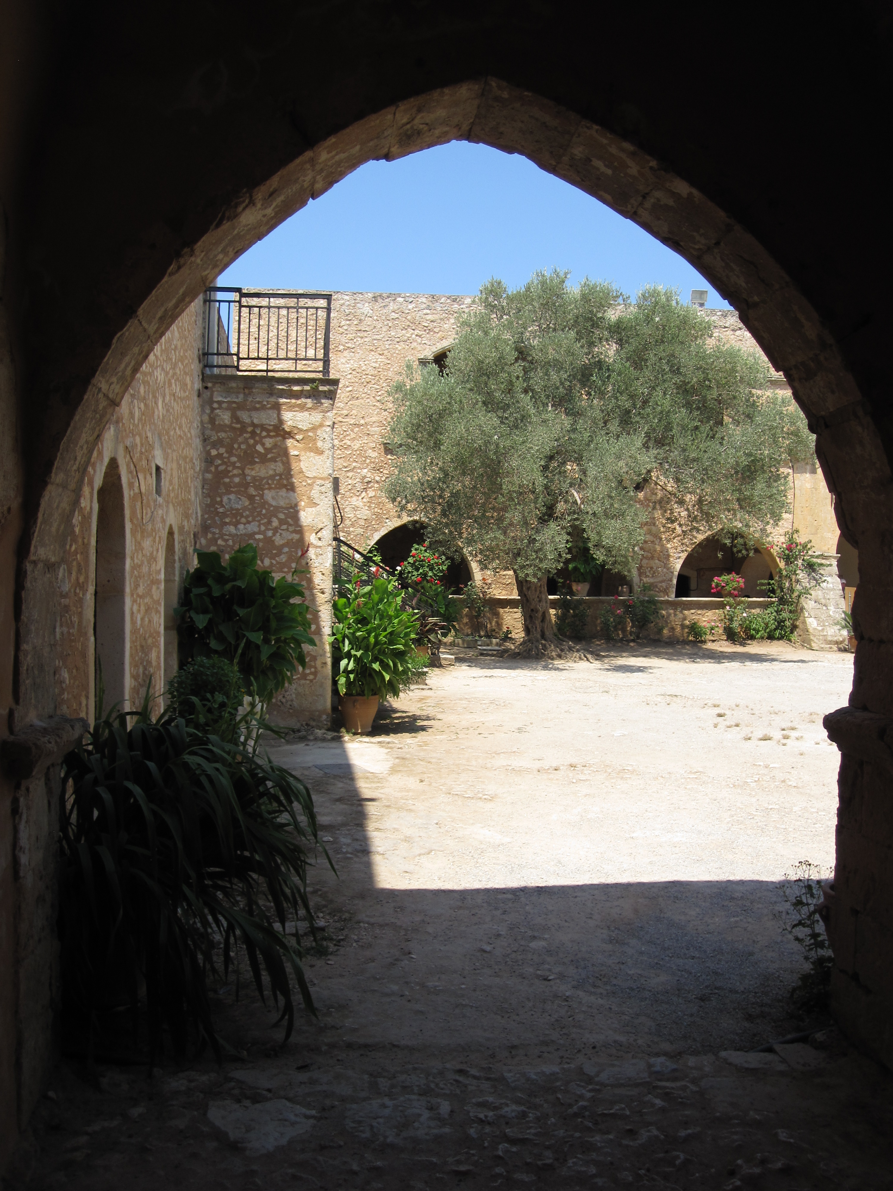 - ♥♥ Monastère d’Arkadi (entrée 2,5 euros par personne): l’endroit est magnifique avec ces bâtiments couleur sable, ces multiples parterres de fleurs, ces oliviers et bien sur la célèbre église. Celle-ci est petite mais richement décorée, dans le plus pure style orthodoxe. Les bâtiments autour de la cour sont destinés à des expositions sur la guerre d’Indépendance. En effet, le monastère a été un haut lieu de la résistance crètoise. Ainsi, pendant la révolte de 1866, 943 Grecs y trouvèrent refuge : des résistants et une majorité de femmes et d’enfants. Après trois jours de combat, et sur les ordres du supérieur du monastère, les Crétois firent sauter les barils de poudre, préférant se sacrifier plutôt que de se rendre. Cette exposition permet de mieux comprendre l’histoire de l’île mais également la vie des moines. Conseil: il faut arriver tôt, entre 9 et 10h, afin d’éviter les cars de touristes.