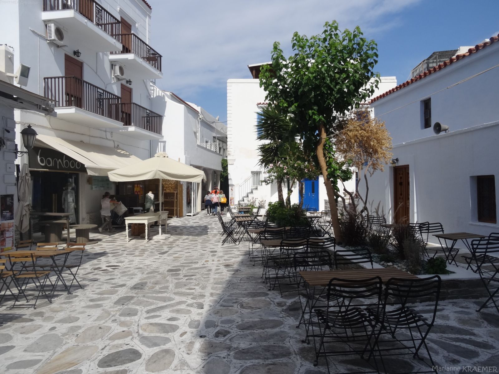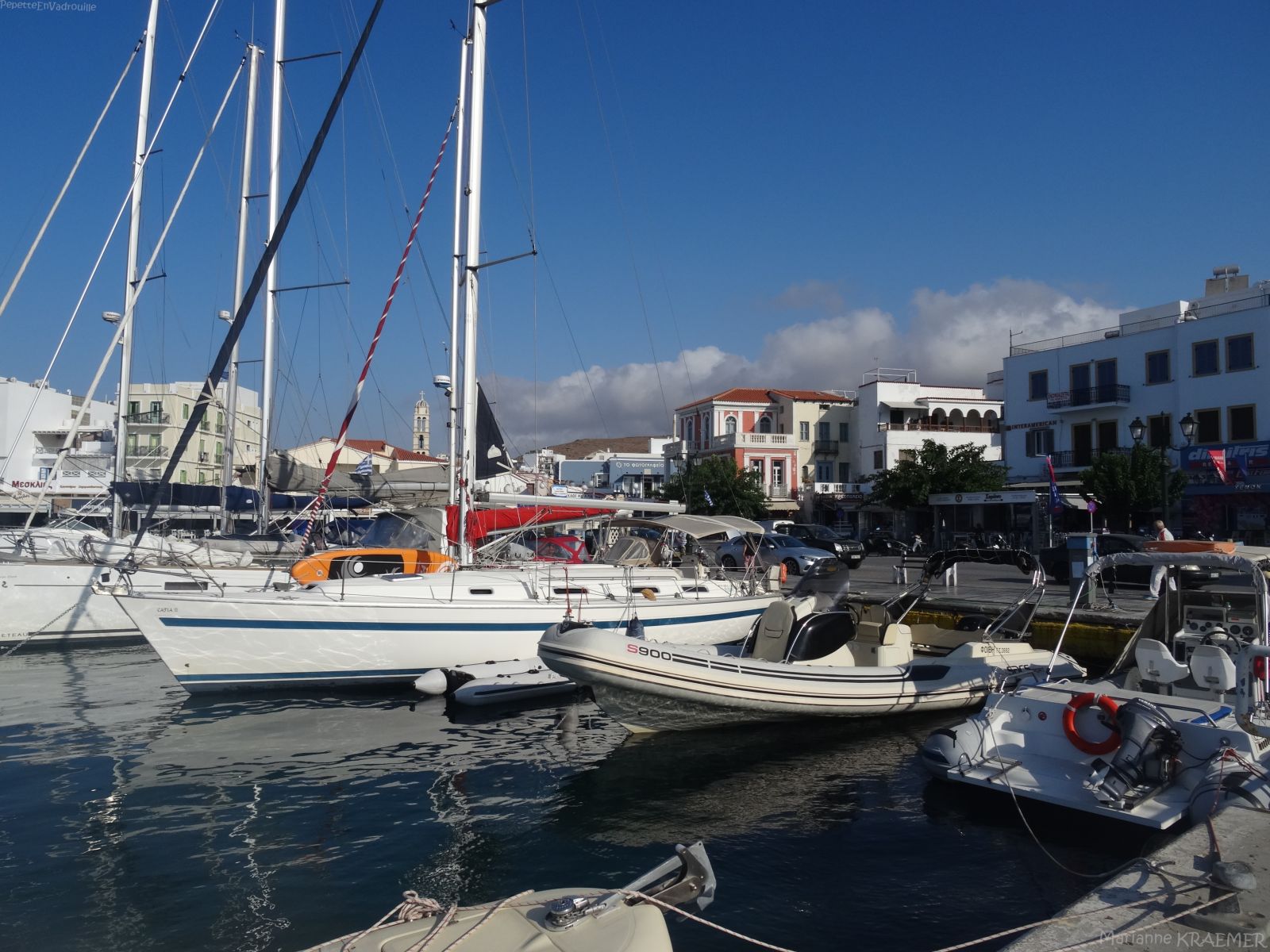 - ♥ ♥ Quartier du port de plaisance: ce quartier est assez vivant le soir avec ses boutiques de mode, ses galeries d’art, ses restaurants et bars. Il est constitué essentiellement de petites ruelles blanches typiques des Cyclades. En se perdant dans ce dédale, on tombe vite sur des placettes et des petites chapelles photogéniques.
