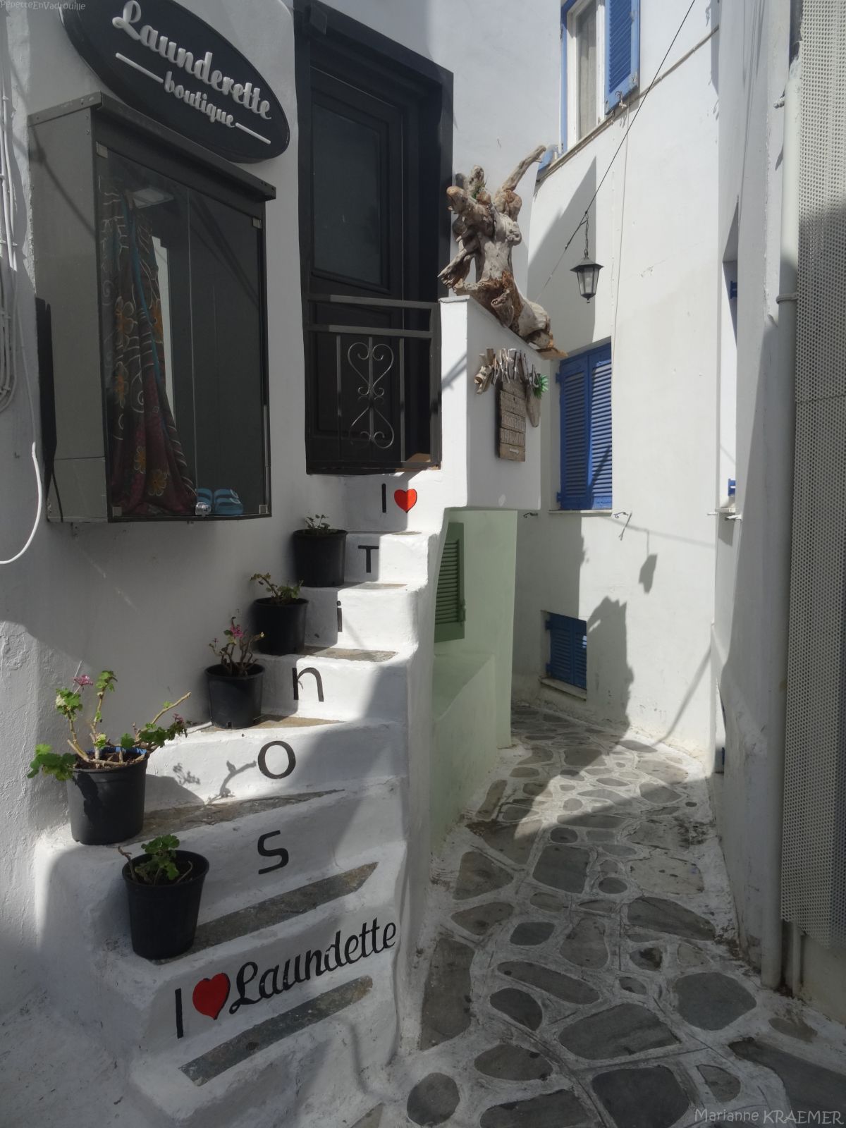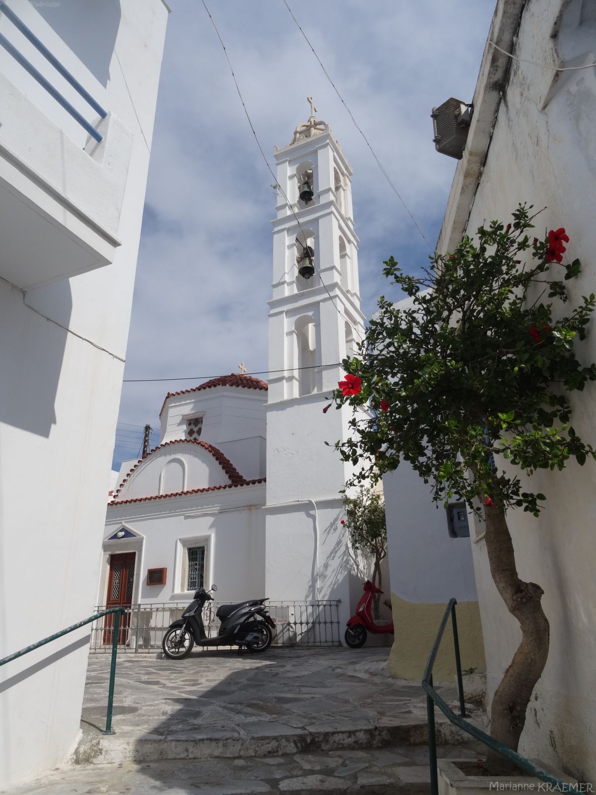 - ♥ ♥ Kardiani: superbe village construit au bord d’un ruisseau, au flanc du Mont Pateles face à la mer Égée et Syros. Gros coup de cœur pour ce village qui nous a fait un peu pensé à Santorin avec ses jolies maisons décorées et ses ruelles bien entretenues. Au hasard des rues, on débouche sur le lavoir agrémenté de photos d’époque et sur les deux églises du village: l’une pour les catholiques et l’autre pour les orthodoxes. Les esplanades devant ces deux églises offre de sublimes panoramas sur la mer. Un village à ne surtout pas rater!